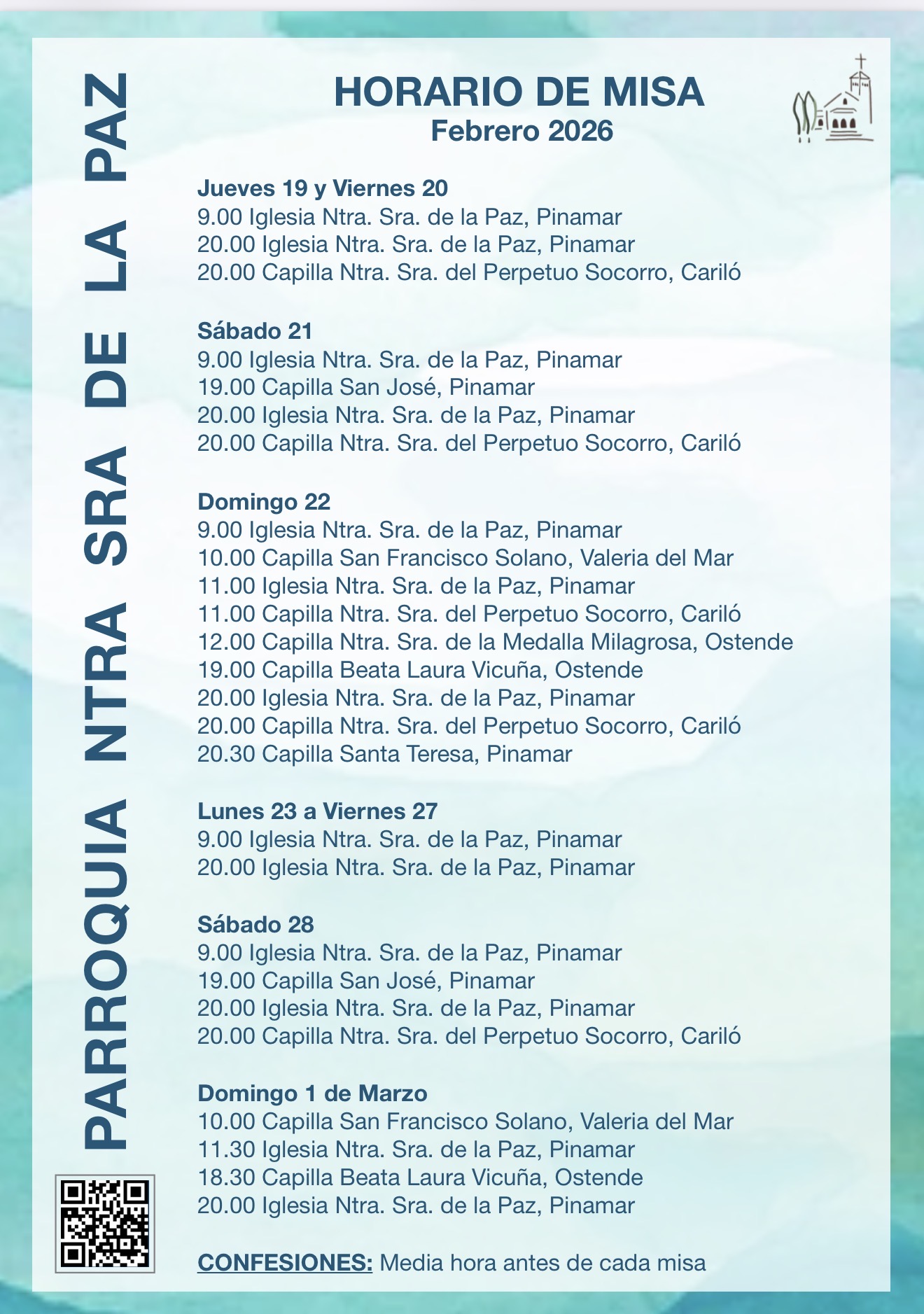 PARA CONSULTAR HORARIO DE MISAS, CONFESIONES, SECRETARÍA Y LIBRERÍA PARROQUIAL